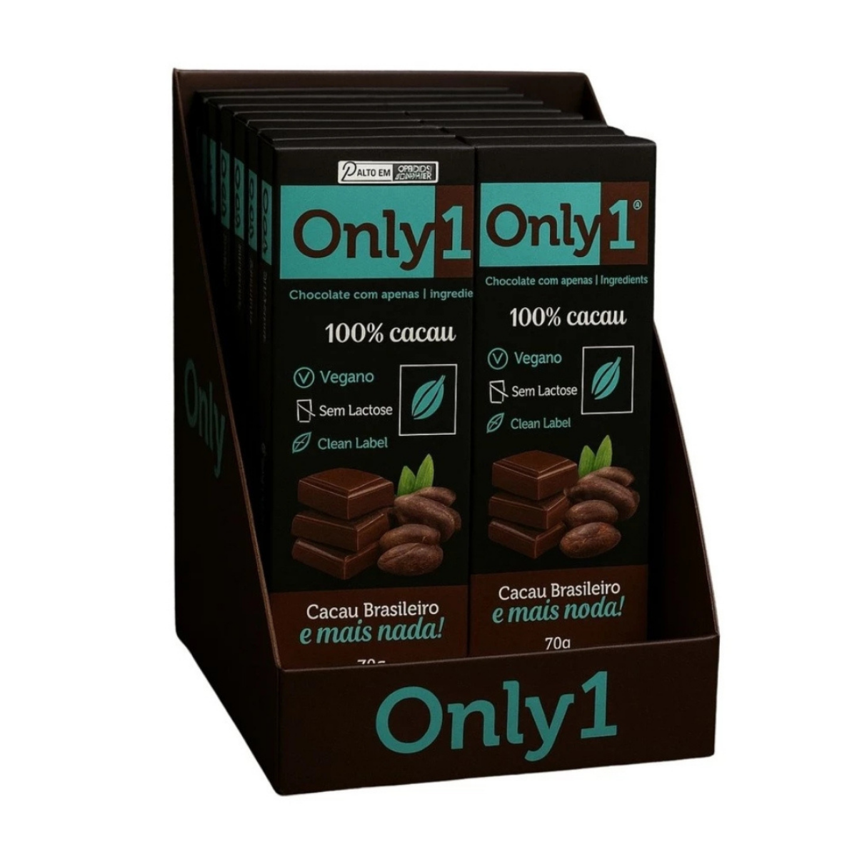 O Chocolate 100% Cacau Sem Lactose Vegano Only1 é um chocolate premium, totalmente vegano e livre dos alergênicos mais comuns, como leite e seus derivados, glúten, soja, ovos e oleaginosas. Clean label, sem gordura vegetal hidrogenada, conservantes ou aditivos artificiais. Produzido com apenas 1 ingrediente: massa de cacau brasileiro tipo 1 de alta qualidade. É um superalimento intenso, sem açúcares adicionados, perfeito para quem busca sabor puro e benefícios antioxidantes do cacau.