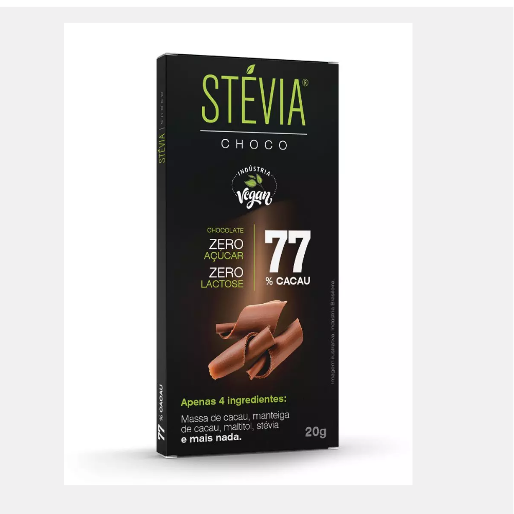 Chocolate Vegano Only1 77% cacau com 15 unidades de 20g.