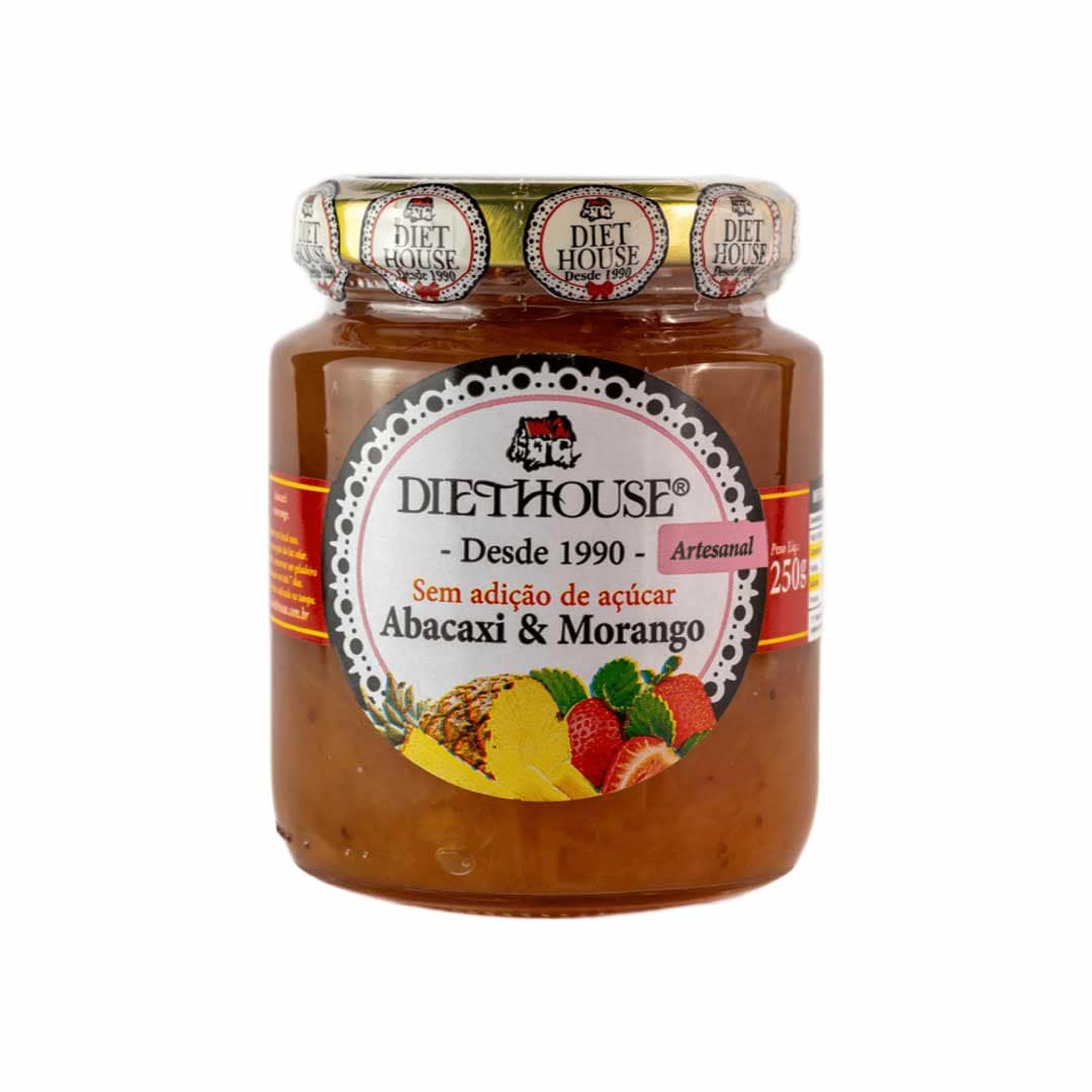 Delicie-se com a fusão tropical e irresistível do Doce Diet de Abacaxi com Morango Diet House, uma combinação de frutas leve, saborosa e naturalmente deliciosa. Produzido sem adição de açúcar, é a opção perfeita para quem busca manter uma alimentação equilibrada sem abrir mão do prazer de um doce de fruta autêntico e vibrante.