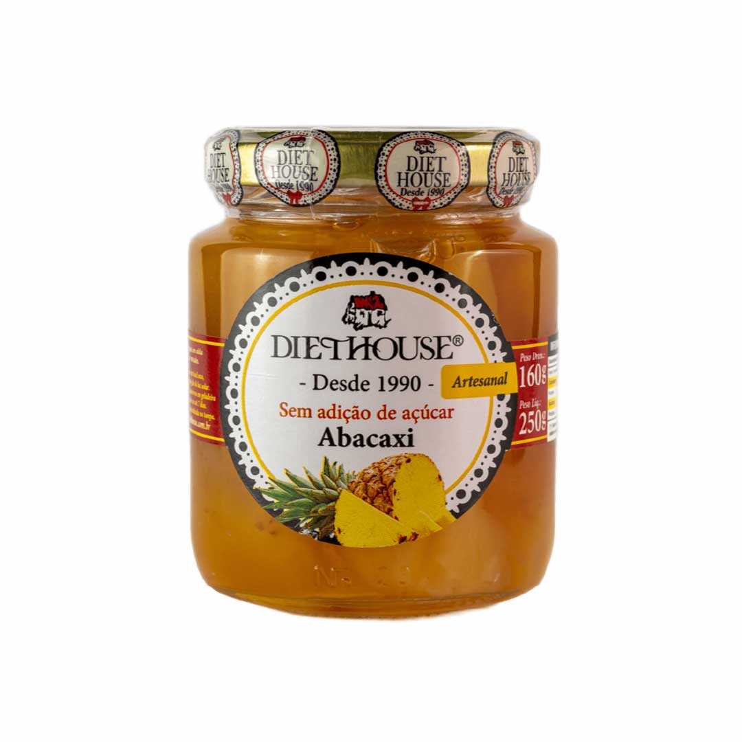 Delicie-se com o sabor tropical irresistível do Doce Diet de Abacaxi em Calda Diet House, uma combinação de frutas leve, saborosa e naturalmente deliciosa. Produzido sem adição de açúcar, é a opção perfeita para quem busca manter uma alimentação equilibrada sem abrir mão do prazer de um doce de fruta autêntico.